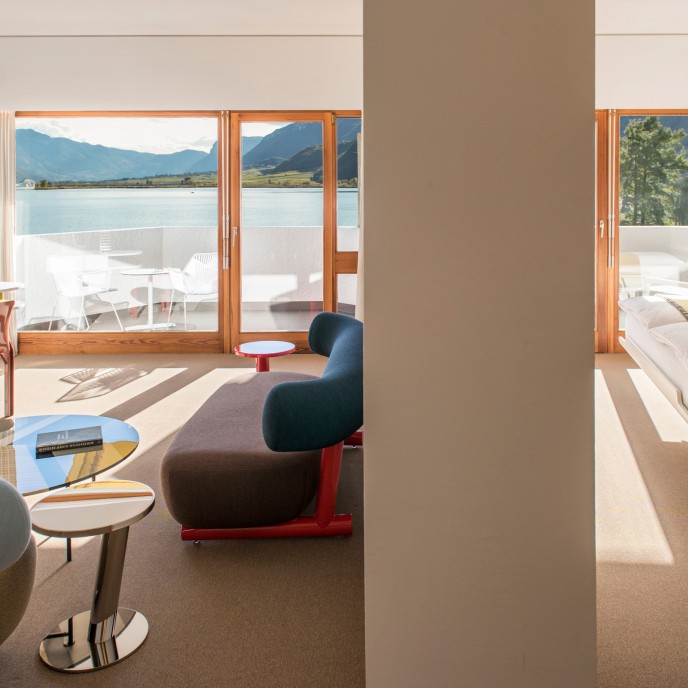 Möglich macht das eine Architektur, die sich Raum nimmt und Form gibt, die Grenzen zwischen Innen und Außen verschwimmen lässt, die Naturschauspiel spiegelt genauso wie Kultur. Und möglich machen das auch liebevoll ausgesuchte Designerstücke, die mitgestalten, ohne Mensch oder Natur die Show zu stehlen. So findet Wohnen zur ursprünglichen Bedeutung: sich geborgen fühlen und zugleich frei… in einem modernen Refugium und Gesamtkunstwerk, einem Hotel am Nordufer des Kalterer Sees.