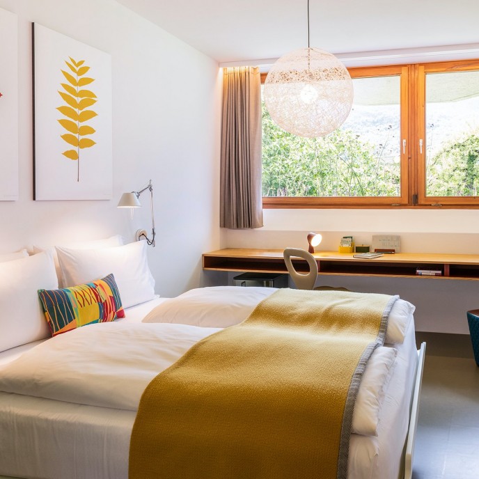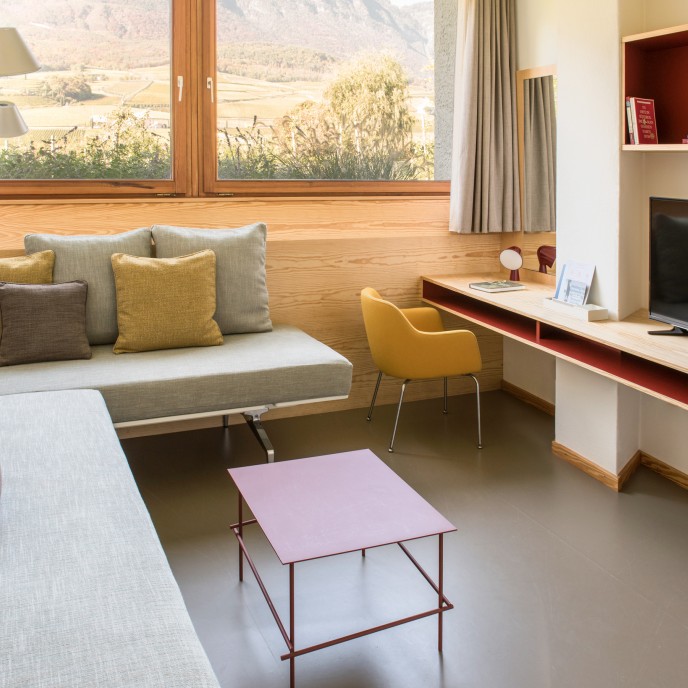 Möglich macht das eine Architektur, die sich Raum nimmt und Form gibt, die Grenzen zwischen Innen und Außen verschwimmen lässt, die Naturschauspiel spiegelt genauso wie Kultur. Und möglich machen das auch liebevoll ausgesuchte Designerstücke, die mitgestalten, ohne Mensch oder Natur die Show zu stehlen. So findet Wohnen zur ursprünglichen Bedeutung: sich geborgen fühlen und zugleich frei… in einem modernen Refugium und Gesamtkunstwerk, einem Hotel am Nordufer des Kalterer Sees.